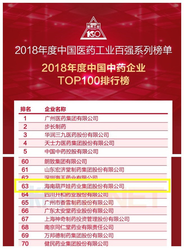 由南方医药经济研究所标点信息集团主办的“中国医药工业百强榜”,素有“中国医药界奥斯卡”之称,是国内最受关注、最具权威的医药排行榜之一。百强企业是中国医药行业的中坚力量,代表着我国医药工业的最高水平。