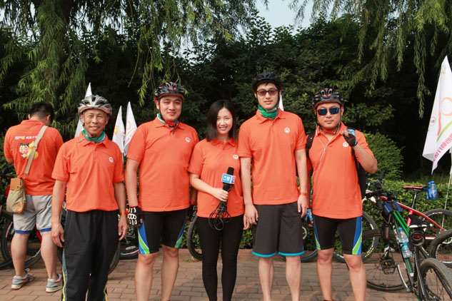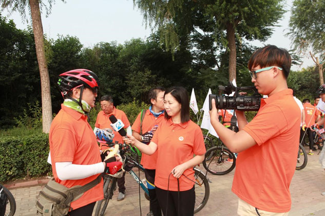 爱心骑行活动得到了山东齐鲁电视台的极大关注,记者现场采访骑行队员!