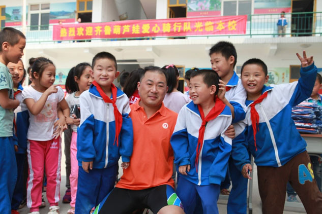 孩子们看到骑行队员带去的礼物露出天真的笑脸,孩子们的快乐也是所有骑行队员最大的安慰。