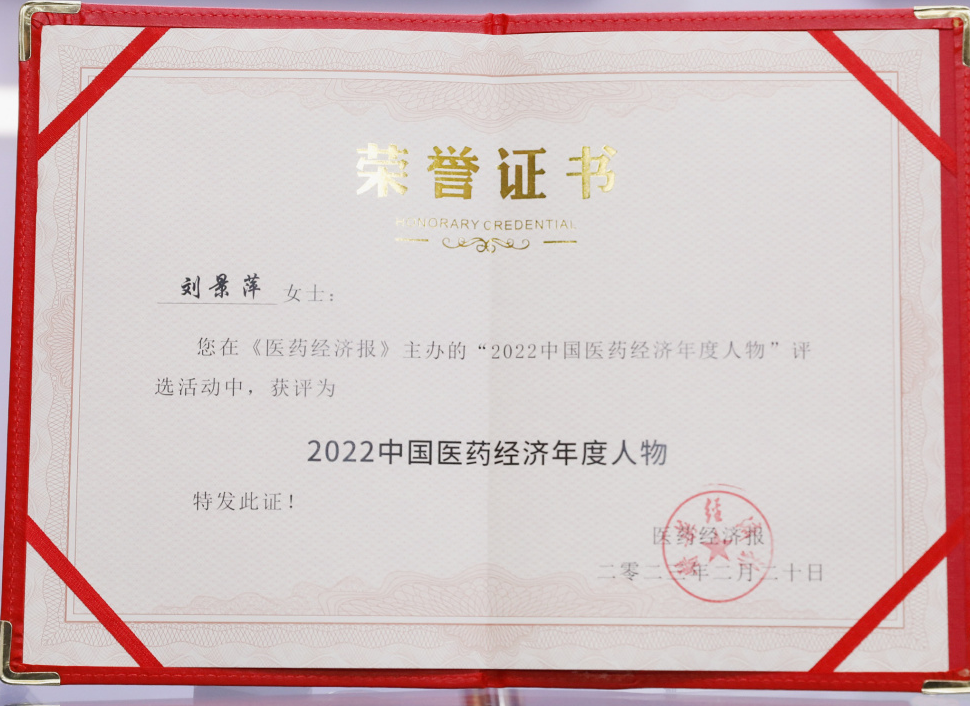 利来国际最老品牌网药业集团董事长刘景萍当选“2022中国医药经济年度人物”