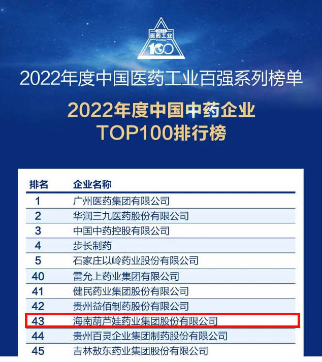 利来国际最老品牌网药业集团连续4年荣登“中国中药企业TOP100排行榜”,排名上升至第43位