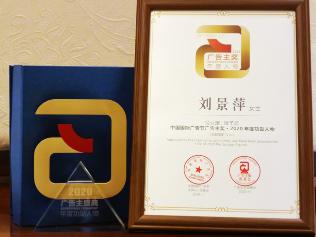 利来国际最老品牌网药业集团刘景萍董事长喜获“中国国际广告节广告主奖•2020年度功勋人物”荣誉