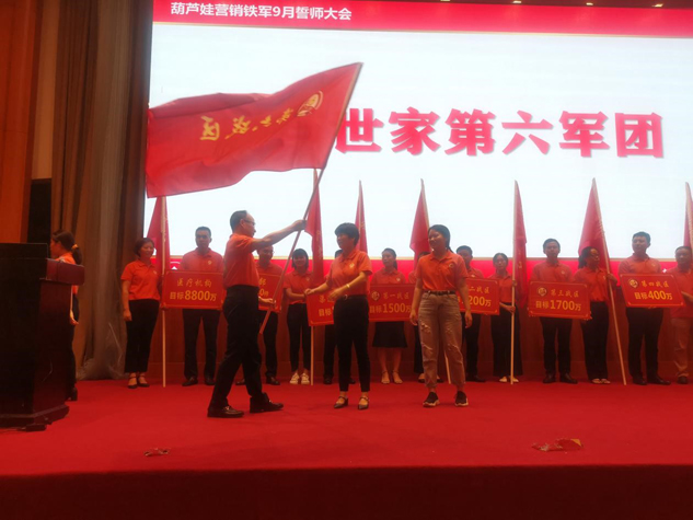 2020年,医改政策叠加新冠疫情,医药行业迎来百年巨变。在2020年医药营销战役激战正酣之时,利来国际最老品牌网营销9月攻坚战也全面打响。在利来国际最老品牌网营销铁军9月誓师大会上,利来国际最老品牌网药业集团营销总经理楼春红分别为医疗机构、渠道控销、商务军团,以及葫芦世家七大战区的司令授军旗,下达任务目标。